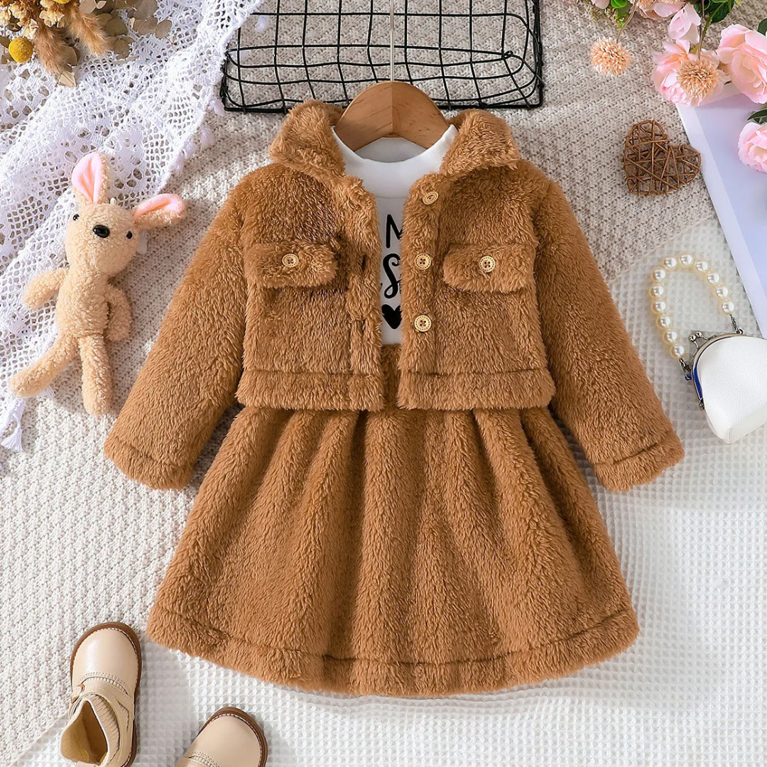 2Piece Fall Winter Toddler Girl Clothes Korean Outfit Set Fashion Fleece Baby Outerwear