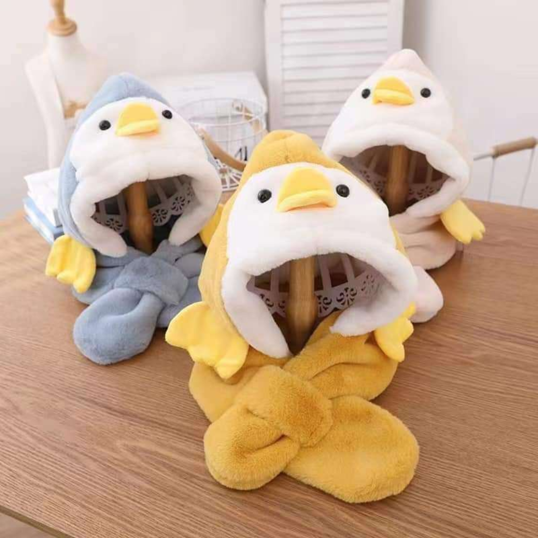 Winter Thicken Plush Scarves Hats Children Ear Protection Fleece Lining Hat Neck Cover Warm Balaclava Set Kids Duck Beanies Caps